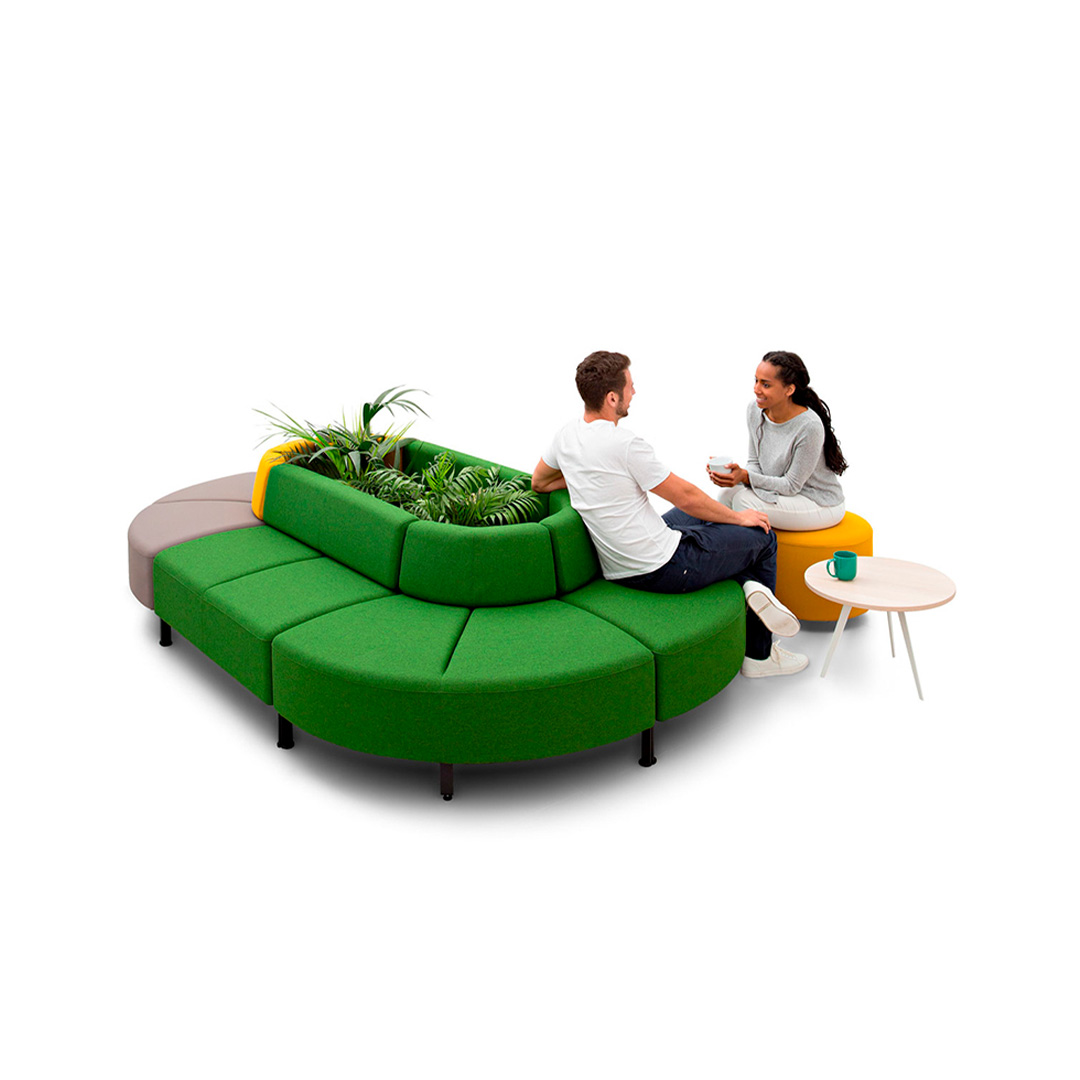 Este puesto de soft seating permite crear puntos de encuentro confortables e informales para la comunicación entre el personal de la empresa. Su diseño y estética amable invita a sentarse.