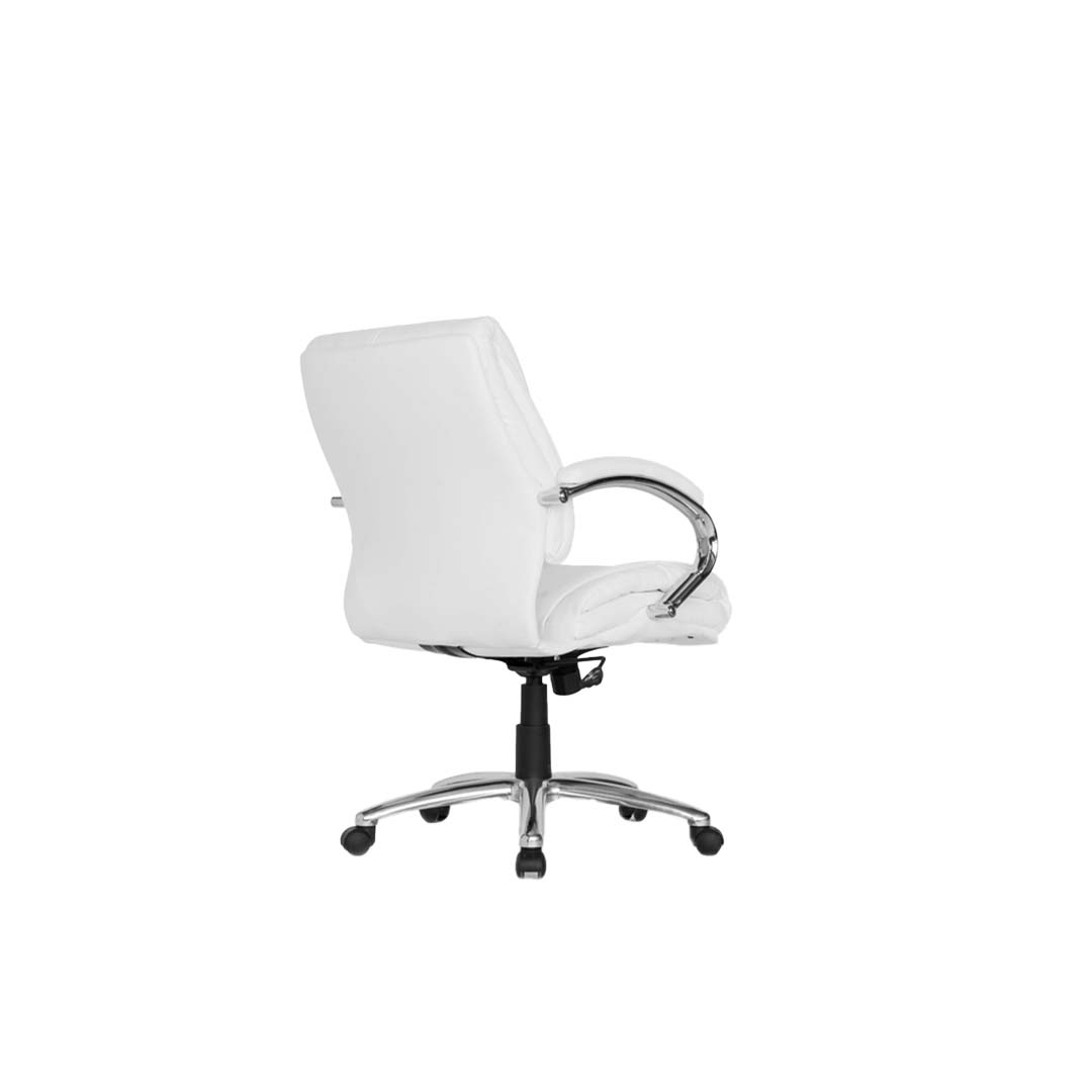 Regulable en altura y giratorio, se presenta en tamaño alto y medio.