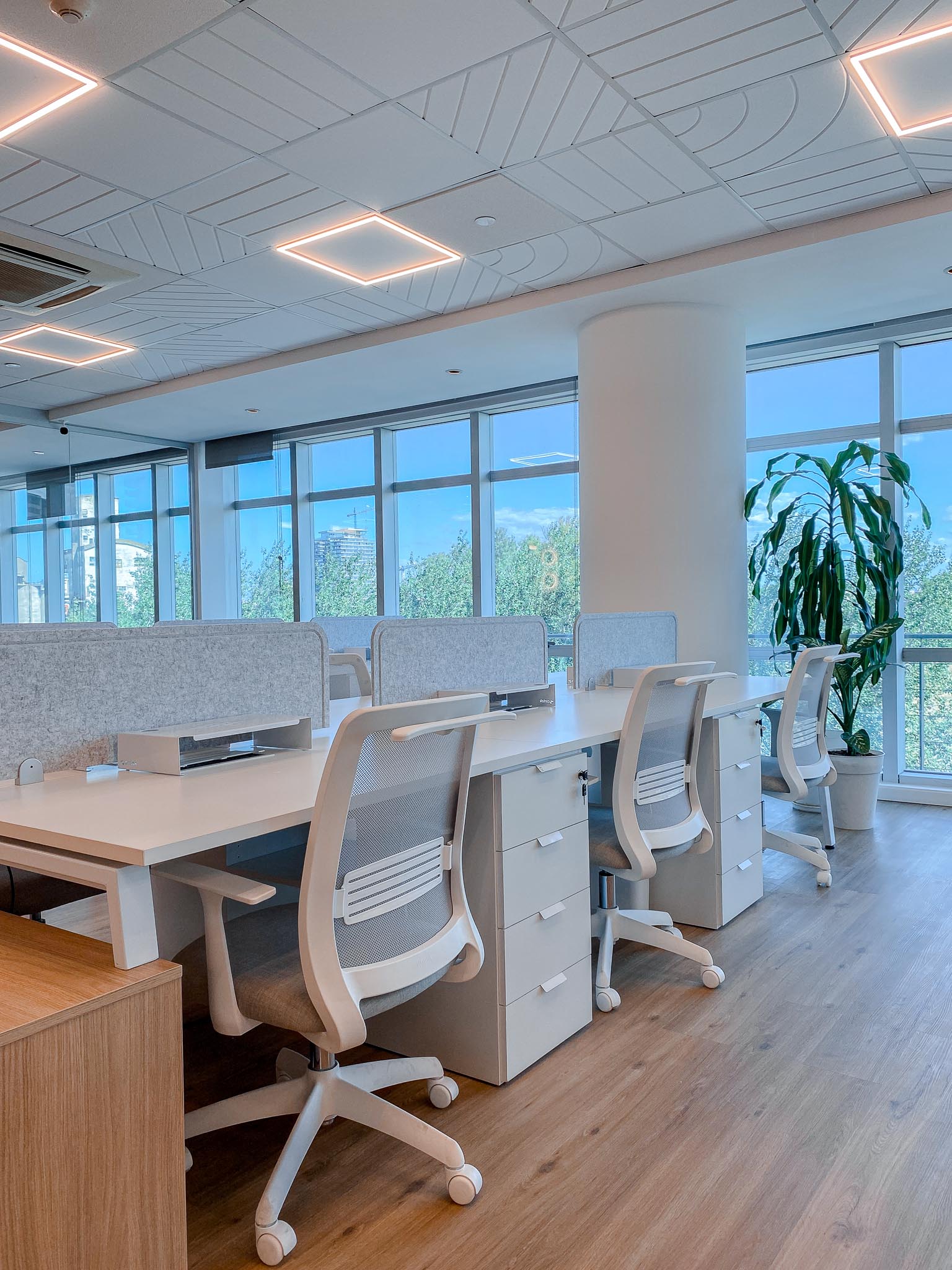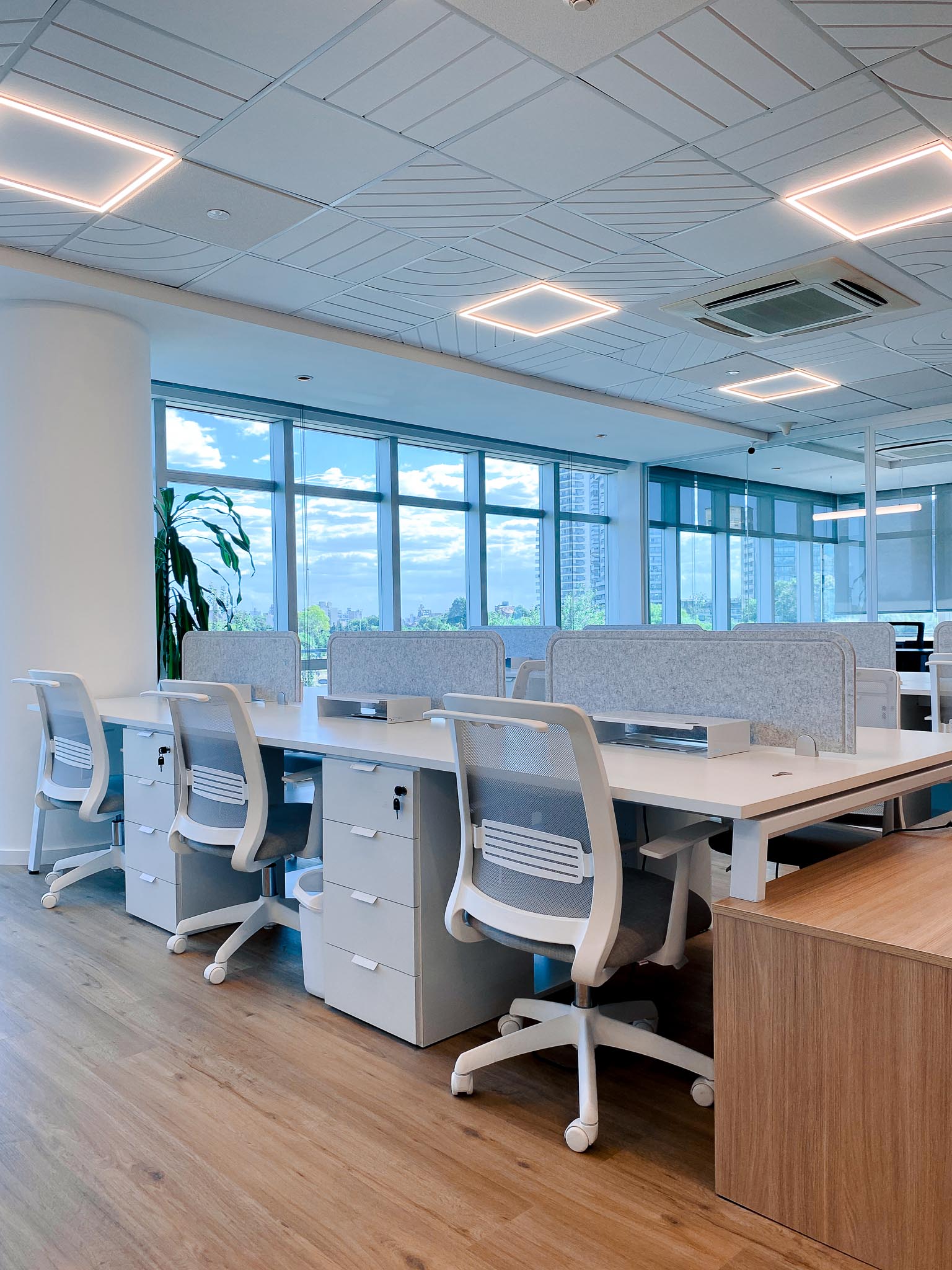 Desarrollamos y equipamos oficinas corporativas con una propuesta integral que combina funcionalidad, ergonomía, diseño y confort acústico, adaptada a cada área de trabajo.